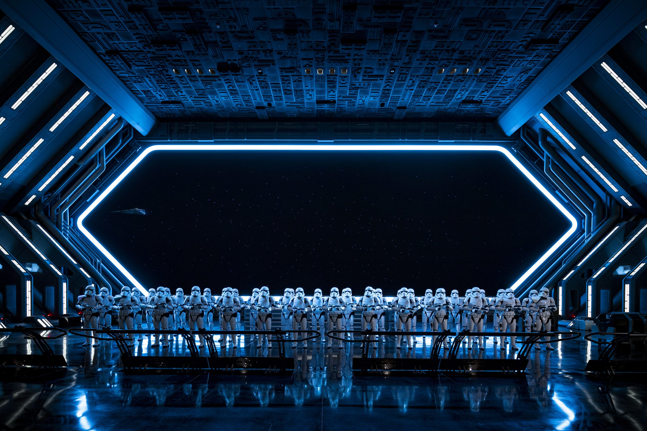 Guests board an Intersystem Transport Ship to blast off Batuu alongside other Resistance recruits as part of Star Wars: Rise of the Resistance, opening Dec. 5, 2019, at Disney’s Hollywood Studios in Florida and Jan. 17, 2020, at Disneyland Park in California. The groundbreaking new attraction inside Star Wars: Galaxy’s Edge takes guests into a climactic battle between the Resistance and the First Order. (Kent Phillips, photographer)As guests move through the queue in Star Wars: Rise of the Resistance, they see flight suits and other military equipment inside the Resistance encampment. The queue sets the stage for the groundbreaking new attraction, opening Dec. 5, 2019, inside Star Wars: Galaxy’s Edge at Disney’s Hollywood Studios in Florida and Jan. 17, 2020, at Disneyland Park in California that takes guests into a climactic battle between the Resistance and the First Order. (Matt Stroshane, photographer)As guests move through the queue in Star Wars: Rise of the Resistance, they see flight suits and other military equipment inside the Resistance encampment. The queue sets the stage for the groundbreaking new attraction, opening Dec. 5, 2019, inside Star Wars: Galaxy’s Edge at Disney’s Hollywood Studios in Florida and Jan. 17, 2020, at Disneyland Park in California that takes guests into a climactic battle between the Resistance and the First Order. (Matt Stroshane, photographer)Guests come face to face with First Order Supreme Leader Kylo Ren as they stumble into the bridge of a Star Destroyer in Star Wars: Rise of the Resistance, the groundbreaking new attraction opening Dec. 5, 2019, inside Star Wars: Galaxy’s Edge at Disney’s Hollywood Studios in Florida and Jan. 17, 2020, at Disneyland Park in California. (Steven Diaz, photographer)Guests come face to face with First Order Supreme Leader Kylo Ren as they race through a Star Destroyer in Star Wars: Rise of the Resistance, the groundbreaking new attraction opening Dec. 5, 2019, inside Star Wars: Galaxy’s Edge at Disney’s Hollywood Studios in Florida and Jan. 17, 2020, at Disneyland Park in California. (Steven Diaz, photographer)BB-8 greets guests inside the makeshift briefing room as part of Star Wars: Rise of the Resistance, the groundbreaking new attraction opening Dec. 5, 2019, inside Star Wars: Galaxy’s Edge at Disney’s Hollywood Studios in Florida and Jan. 17, 2020, at Disneyland Park in California that takes guests into a climactic battle between the Resistance and the First Order. (Matt Stroshane, photographer)Fifty menacing First Order Stormtroopers await guests as they arrive in the hangar bay of a Star Destroyer as part of Star Wars: Rise of the Resistance, the groundbreaking new attraction opening Dec. 5, 2019, inside Star Wars: Galaxy’s Edge at Disney’s Hollywood Studios in Florida and Jan. 17, 2020, at Disneyland Park in California that takes guests into a climactic battle between the Resistance and the First Order. (Matt Stroshane, photographer)Lieutenant Bek, a Mon Calamari Resistance officer, speaks with guests aboard an Intersystem Transport Ship as they blast off Batuu in Star Wars: Rise of the Resistance, the groundbreaking new attraction opening Dec. 5, 2019, inside Star Wars: Galaxy’s Edge at Disney’s Hollywood Studios in Florida and Jan. 17, 2020, at Disneyland Park in California that takes guests into a climactic battle between the Resistance and the First Order. (Kent Phillips, photographer)Guests see Poe Dameron’s X-wing starfighter, Black One (foreground), and board an Intersystem Transport Ship (background) as part of Star Wars: Rise of the Resistance, the groundbreaking new attraction opening Dec. 5, 2019, inside Star Wars: Galaxy’s Edge at Disney’s Hollywood Studios in Florida and Jan. 17, 2020, at Disneyland Park in California that takes guests into a climactic battle between the Resistance and the First Order. (Kent Phillips, photographer)First Order R5-series astromech droids pilot troop transports onboard a Star Destroyer in Star Wars: Rise of the Resistance, the groundbreaking new attraction opening Dec. 5, 2019, inside Star Wars: Galaxy’s Edge at Disney’s Hollywood Studios in Florida and Jan. 17, 2020, at Disneyland Park in California that takes guests into a climactic battle between the Resistance and the First Order. (Kent Phillips, photographer)Fifty menacing First Order Stormtroopers await guests as they arrive in the hangar bay of a Star Destroyer as part of Star Wars: Rise of the Resistance, the groundbreaking new attraction opening Dec. 5, 2019, inside Star Wars: Galaxy’s Edge at Disney’s Hollywood Studios in Florida and Jan. 17, 2020, at Disneyland Park in California that takes guests into a climactic battle between the Resistance and the First Order. (Matt Stroshane, photographer)Fifty menacing First Order Stormtroopers await guests as they arrive in the hangar bay of a Star Destroyer as part of Star Wars: Rise of the Resistance, the groundbreaking new attraction opening Dec. 5, 2019, inside Star Wars: Galaxy’s Edge at Disney’s Hollywood Studios in Florida and Jan. 17, 2020, at Disneyland Park in California that takes guests into a climactic battle between the Resistance and the First Order. (Matt Stroshane, photographer)Fifty menacing First Order Stormtroopers await guests as they arrive in the hangar bay of a Star Destroyer as part of Star Wars: Rise of the Resistance, the groundbreaking new attraction opening Dec. 5, 2019, inside Star Wars: Galaxy’s Edge at Disney’s Hollywood Studios in Florida and Jan. 17, 2020, at Disneyland Park in California that takes guests into a climactic battle between the Resistance and the First Order. (Matt Stroshane, photographer)Guests board a First Order Short-Range Evacuation Vehicle – otherwise known as an escape pod – in Star Wars: Rise of the Resistance, in Star Wars: Rise of the Resistance, the groundbreaking new attraction opening Dec. 5, 2019, inside Star Wars: Galaxy’s Edge at Disney’s Ho