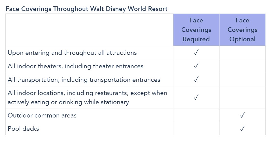 The chart below appears on the Disney World website, and reflects this new update to their mask policy: