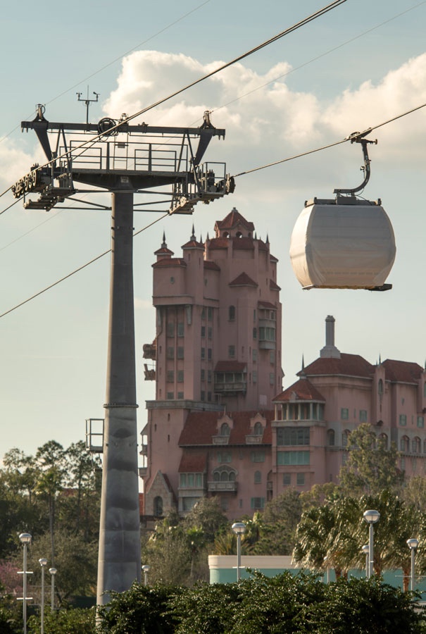 As you can see in the image with The Twilight Zone Tower of Terror in the background, the gondolas remained covered during testing. But when operating later this fall, some cabins will feature beautiful graphics based on Disney films, attractions and characters.