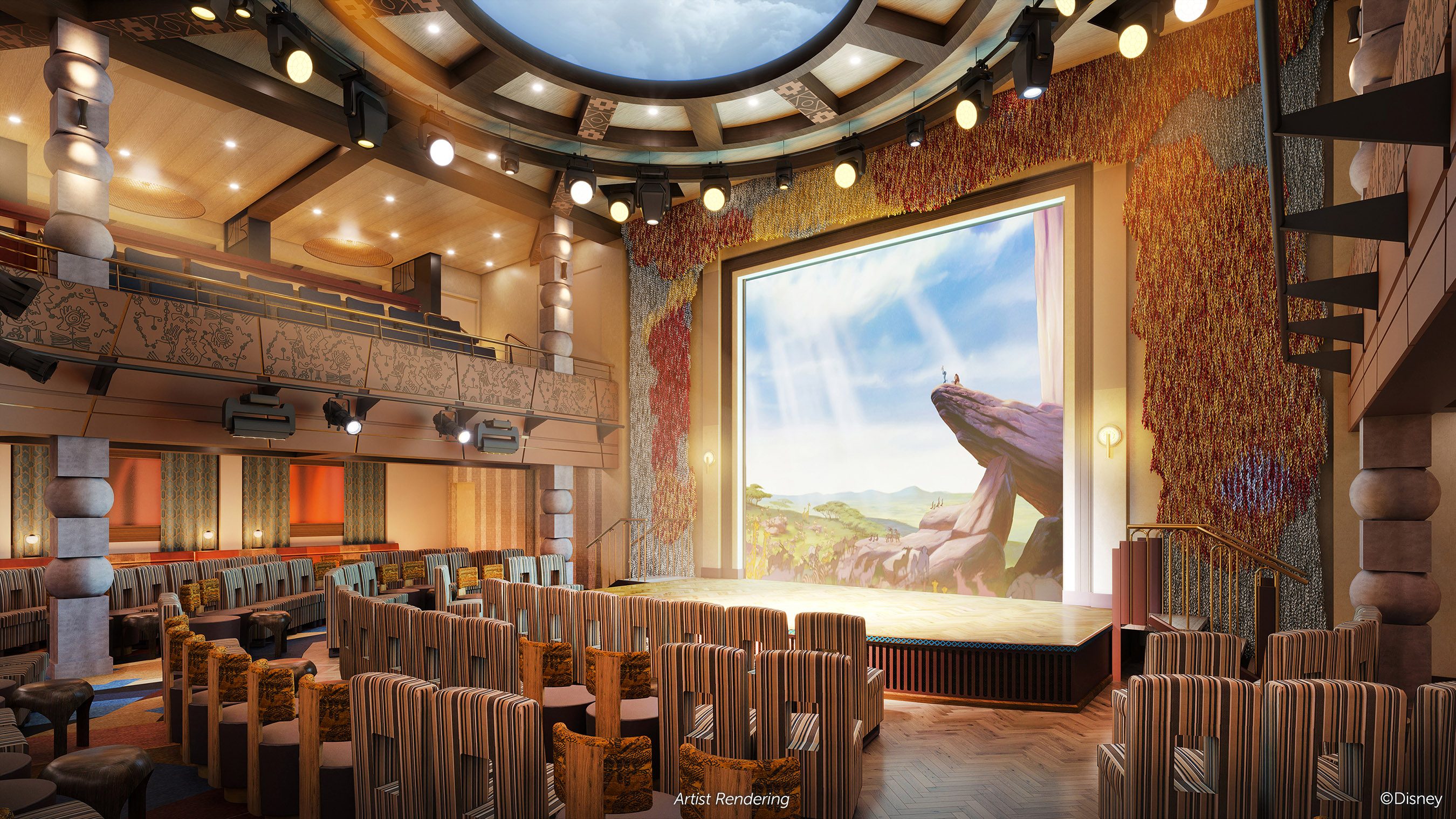 The Grand Hall will embody the ship’s theme of adventure, with statues and décor that call on the gilded palace and wonder of Agrabah from Walt Disney Animation Studios’ classic tale, “Aladdin.” The space will serve as the ship’s most prominent gathering space and will offer its own dedicated entertainment moments and surprises.