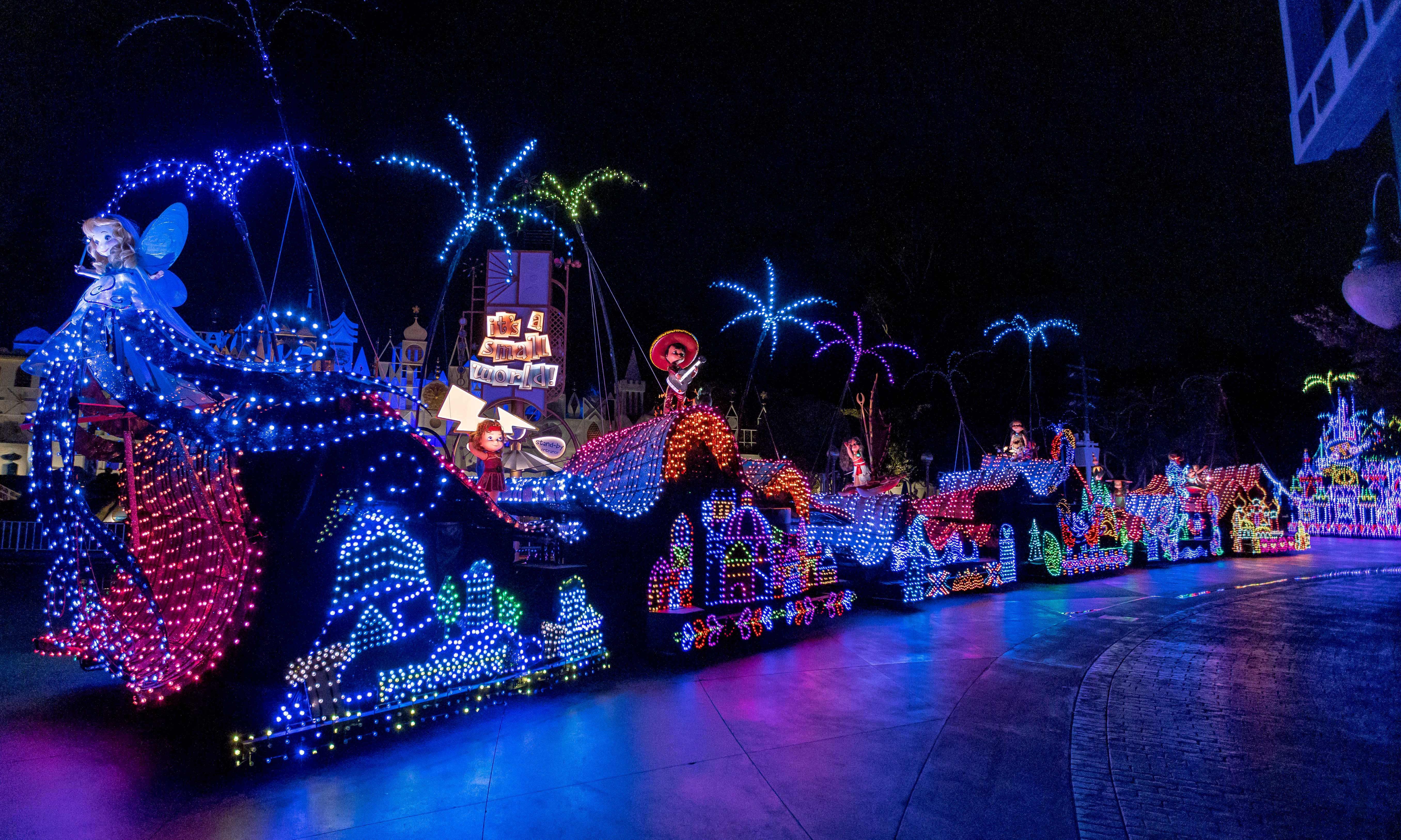 To honor the milestone 50th anniversary of “Main Street Electrical Parade,” Disney Live Entertainment will introduce a magnificent grand finale that celebrates the theme of togetherness in an all-new float. This universal theme is reflected in the creative concept of the grand finale sequence, drawing inspiration from the original design of classic “Main Street Electrical Parade” floats and Mary Blair’s iconic art style on “it’s a small world.” The seven-segment float stretches 118 feet in length and brings to life more than a dozen Walt Disney Animation Studios and Pixar Animation Studios films, making it one of the longest and grandest sequences in the parade’s history. These stories will be interpreted in thousands of sparkling lights and electro-synthe-magnetic musical sound, with unique representations of beloved characters as animated dolls.