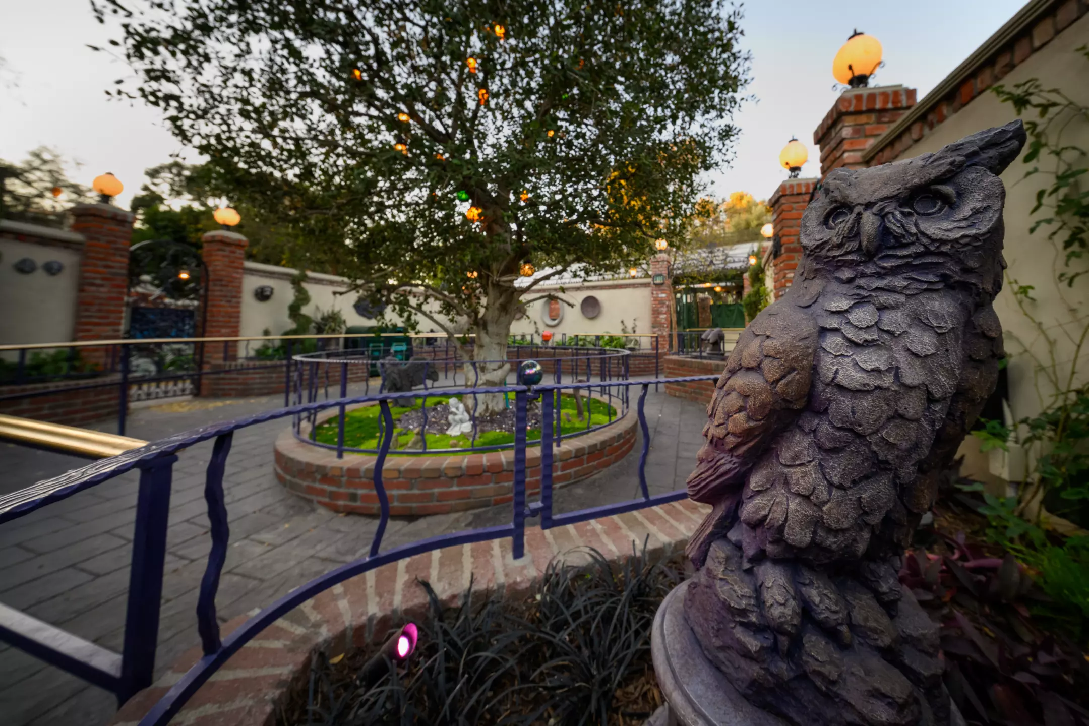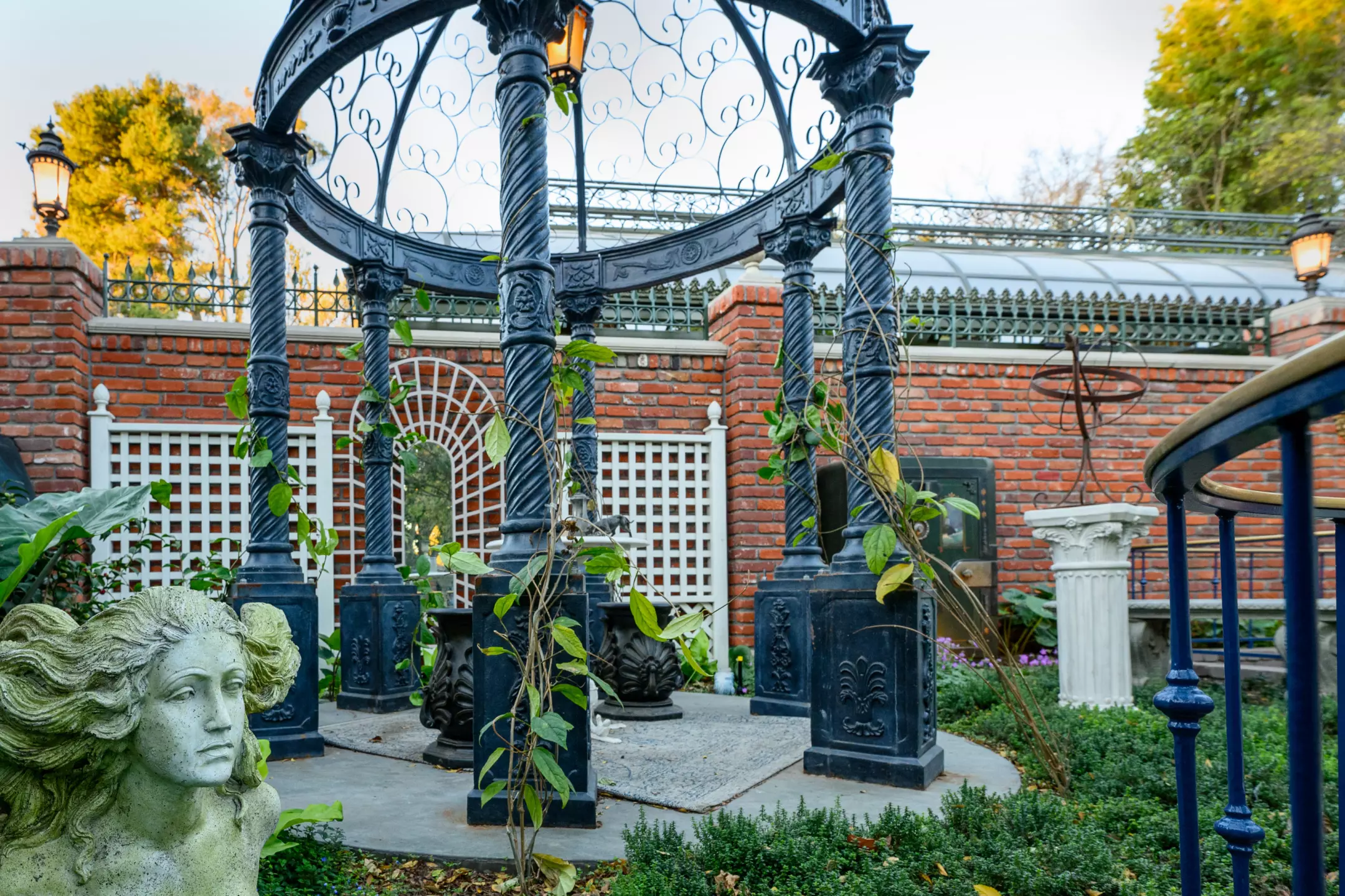 The renovation extends beyond the mansion itself to include newly designed queue areas featuring themed gardens and a greenhouse. These additions serve both practical and storytelling purposes, accommodating modern accessibility standards while expanding the attraction's lore. The gardens are divided into distinct areas, each telling its own story through carefully curated details and antiques that Irvine personally sourced "from Pasadena to Temecula."