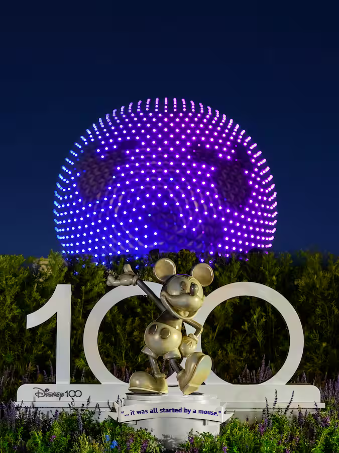 Starting September 22, EPCOT will unveil a host of limited-time attractions for the Disney100 celebration. If you've already enjoyed taking selfies with the Disney100 backdrops present at all four theme parks and Disney Springs, prepare to be thrilled with a new platinum Mickey Mouse sculpture located in World Celebration. What’s more, with Spaceship Earth forming a striking backdrop, this location promises to be a unique spot for memorable snaps.