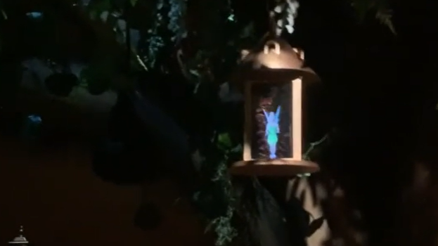 During the meet-and-greet playset, Tinker Bell first appeared to her Guests in her lantern, and then flew around the room. She finally landed in a device she invented which allows her voice to be heard by her those who have come to visit. Tinker Bell was fully interactive, and addressed each child by name.