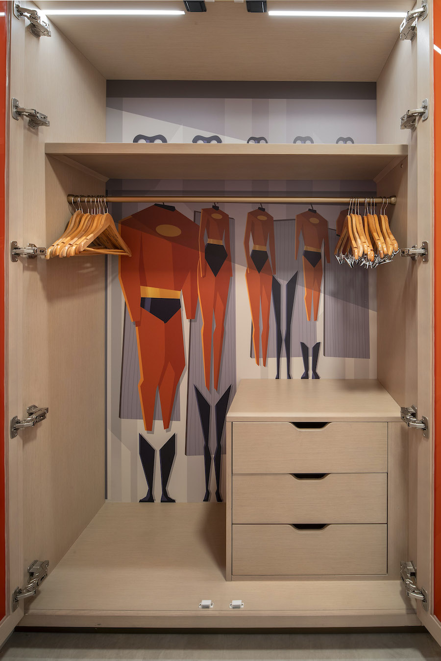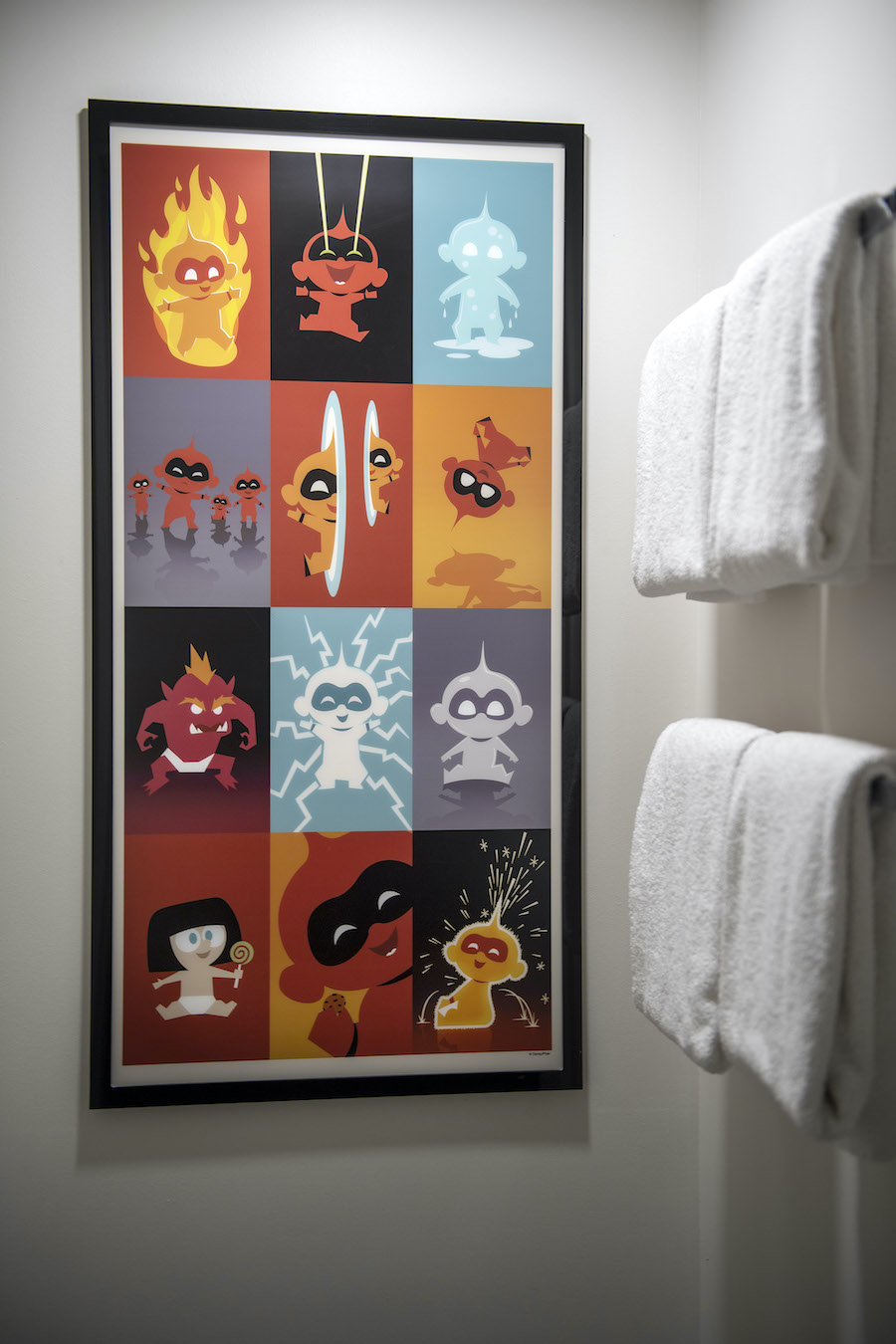 Due to make its debut this fall, the new room decor "blends a sleek Monorail motif with some favorite characters from Pixar Animation Studios' Incredibles films, including Jack-Jack, Frozone and Edna Mode." Artwork in the Guest rooms on all nine floors of the Contemporary tower, as well as in the corridors, will be "futuristic and oh so stylish, dahling, complementing the Resort's architecture while putting the Supers' powers on display."