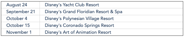 Disney has yet to announce the reopening dates for the following Resorts at Walt Disney World: