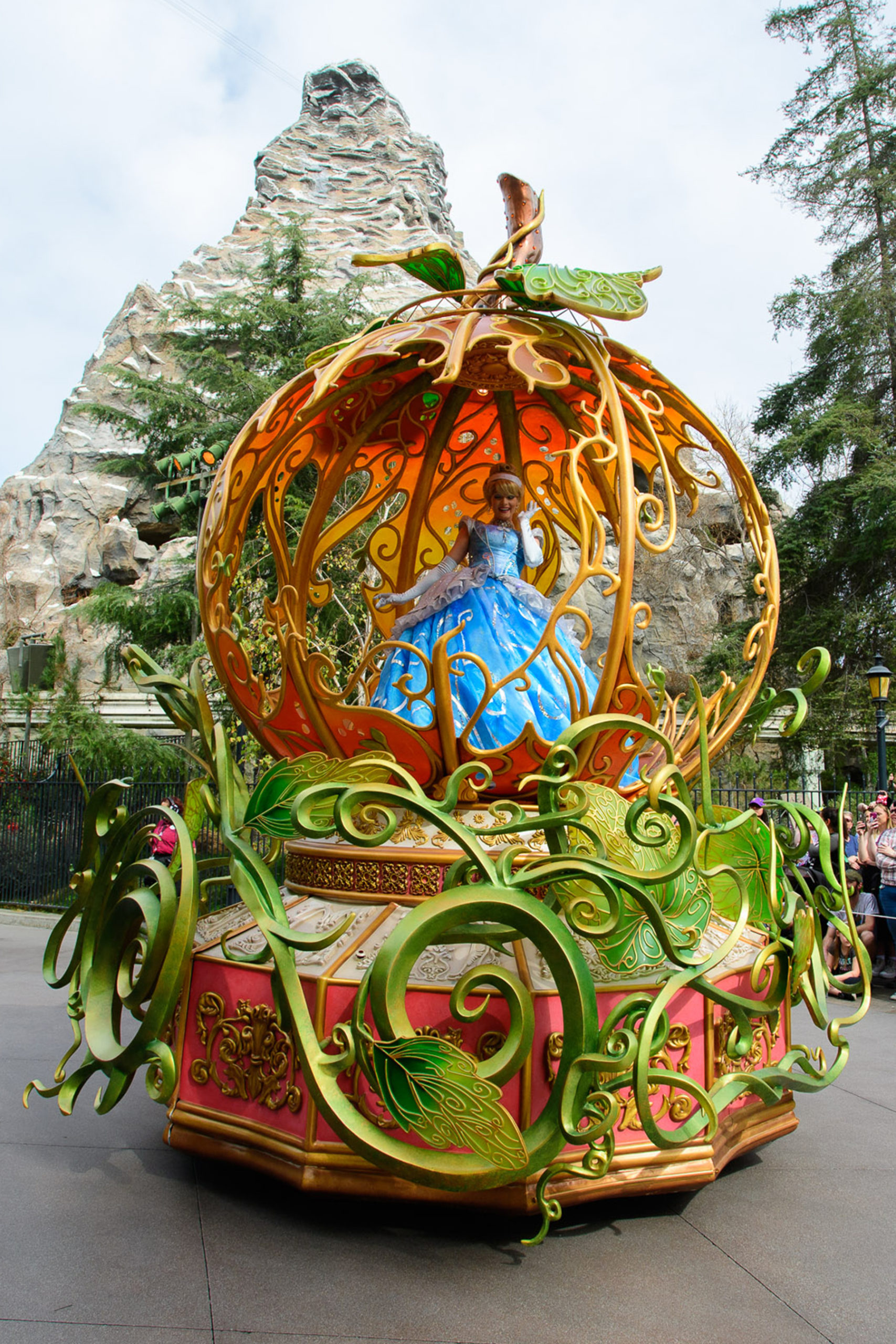 - The “Cinderella” float captures the moment of “Bibbidi Bobbidi Boo,” as Cinderella is seen inside a grand pumpkin, just as it magically transforms into a glistening carriage to whisk her off to the ball.