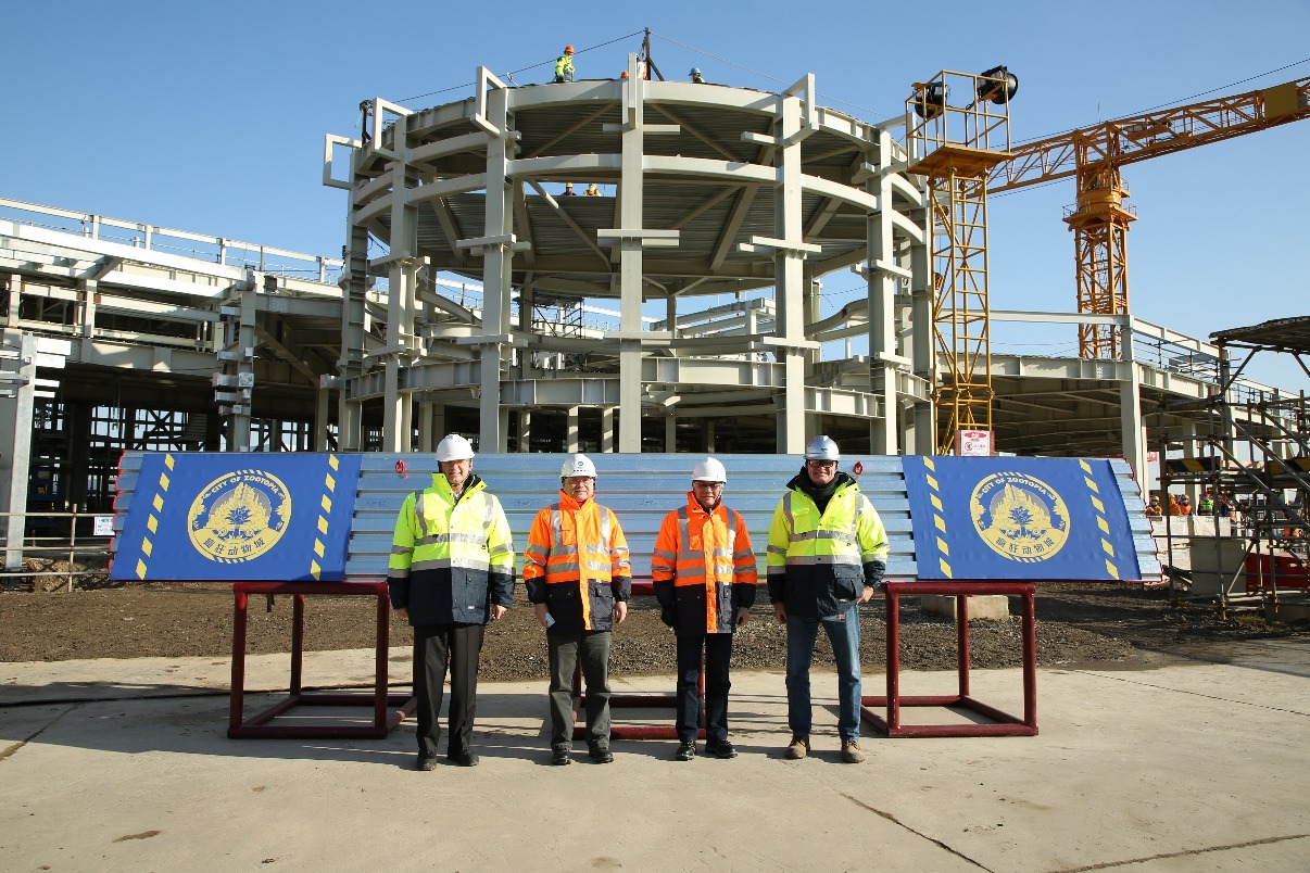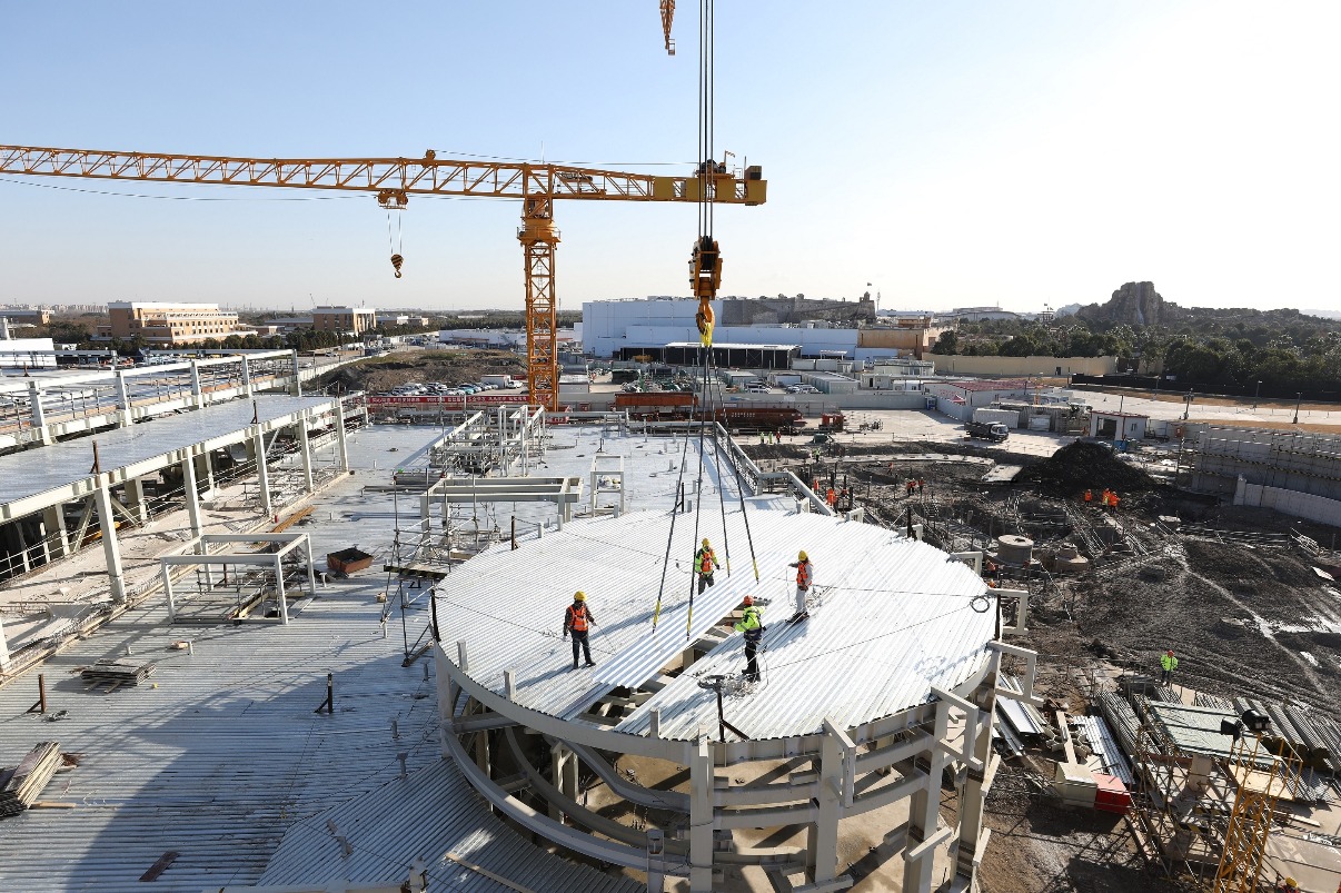 Disney representatives from Shanghai Disneyland joined leadership from both the Administrative Commission of Shanghai International Resort and Shanghai Shendi Group today for the installation of the final steel roof deck of a key attraction at the Park's new Zootopia-themed land. Leaders from the three companies gathered at the building site to celebrate the major construction milestone, signing the deck and watching as it was set atop the attraction structure.