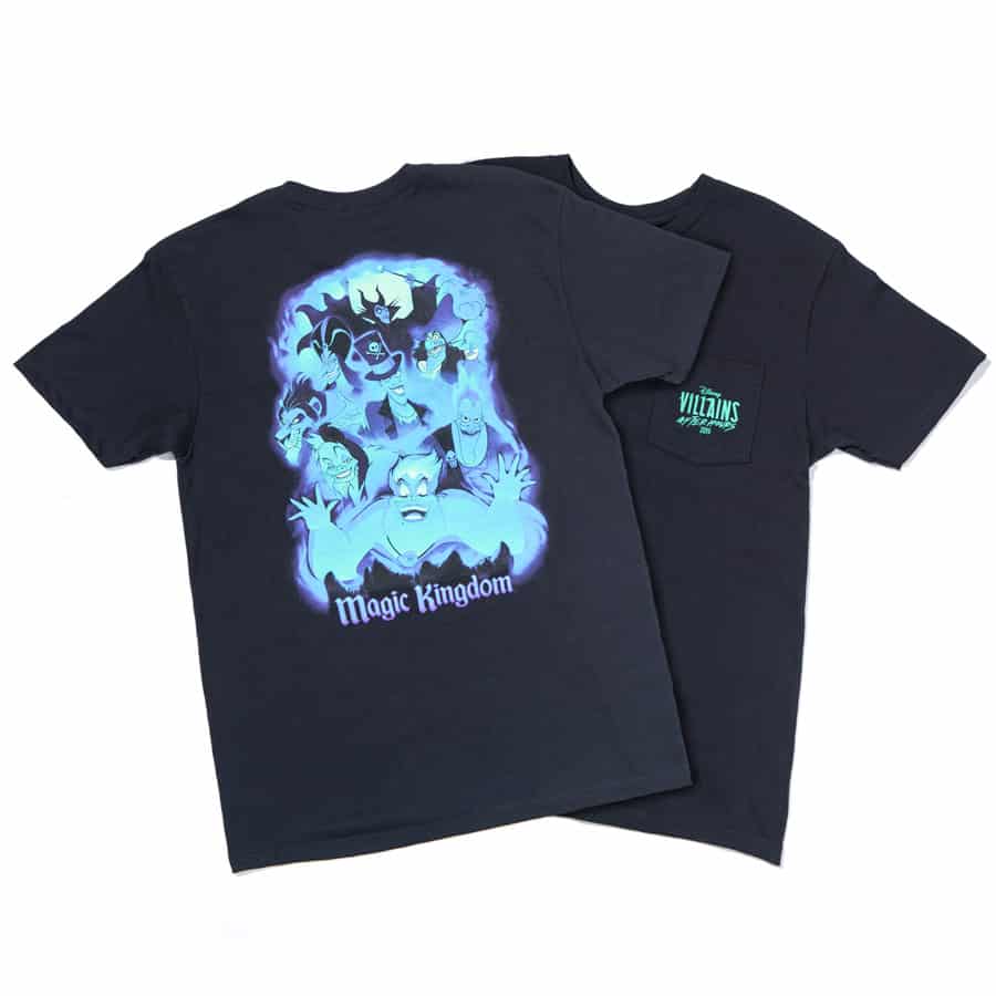 Many of the most popular Disney Villains were gathered together for the group image on these pocket T-shirts, including Jafar, Cruella de Vil, Dr. Facilier, Captain Hook and Scar: