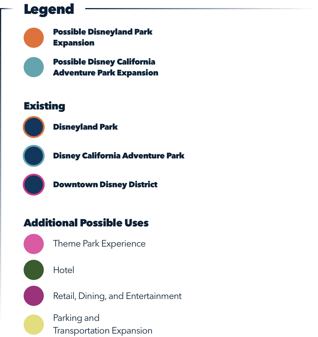 "To support future development over the next few decades, Disney plans to significantly invest in transportation, parking, transit and pedestrian safety measures to improve mobility throughout The Anaheim Resort. In the future, Disney envisions creating a new parking destination on the east side of The Anaheim Resort, which would include a pedestrian bridge with upgraded entrance accessibility for hotels and businesses located along Harbor Boulevard. In addition, Disney will continue to work with area businesses and the city to invest in and encourage the use of public transit and ride-sharing for our cast and guests."