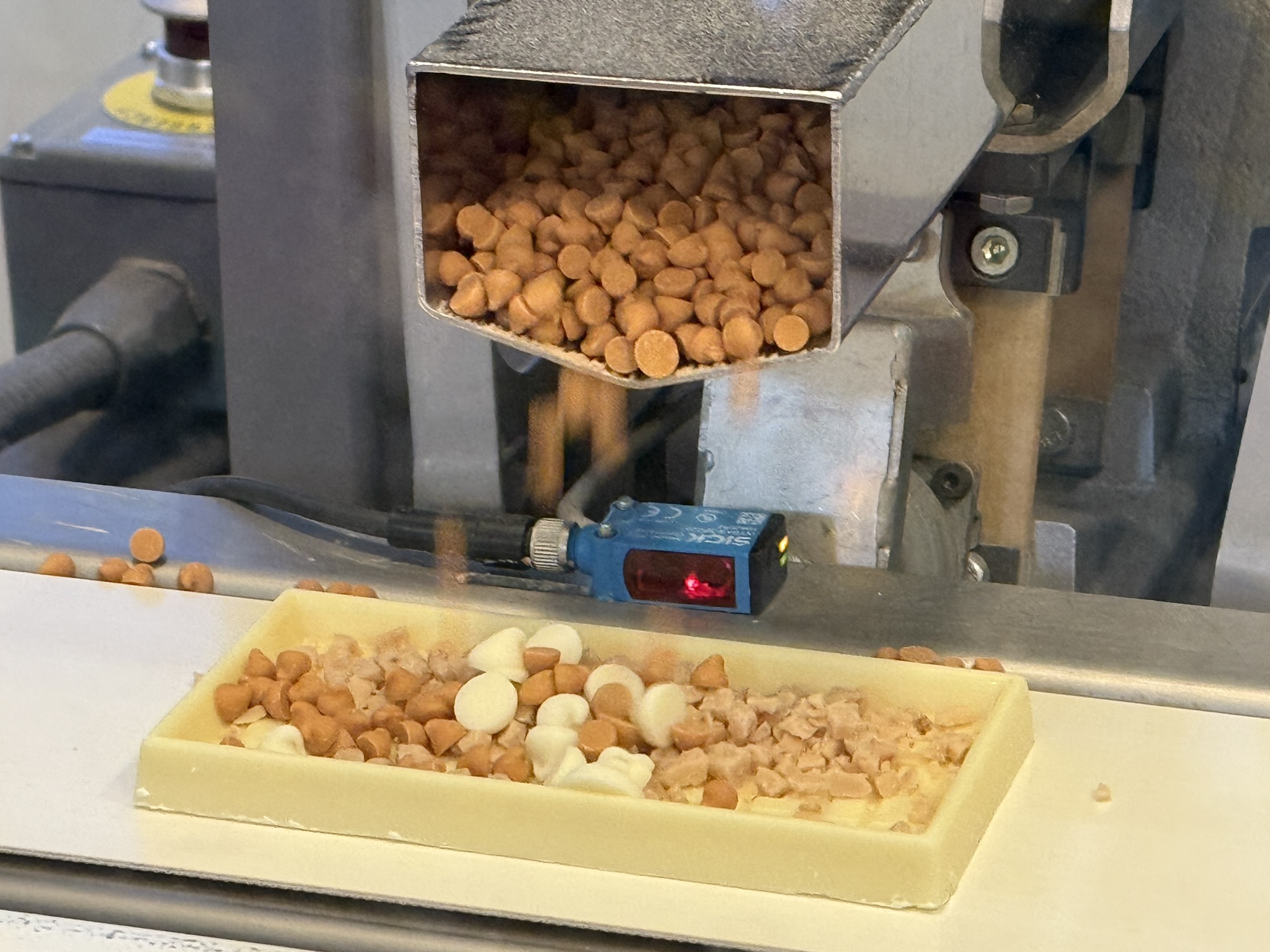 Next, you design your own wrapper and then watch your bar travel down the assembly line, eventually reaching the looooong cooling tunnel. When your bar emerges, it’s wrapped by machine and handed to you by an attendant.