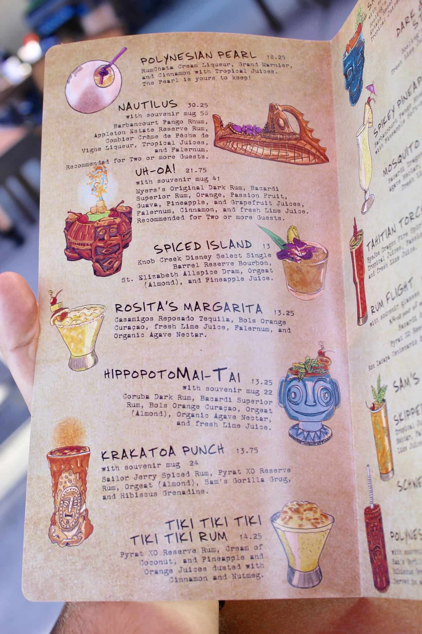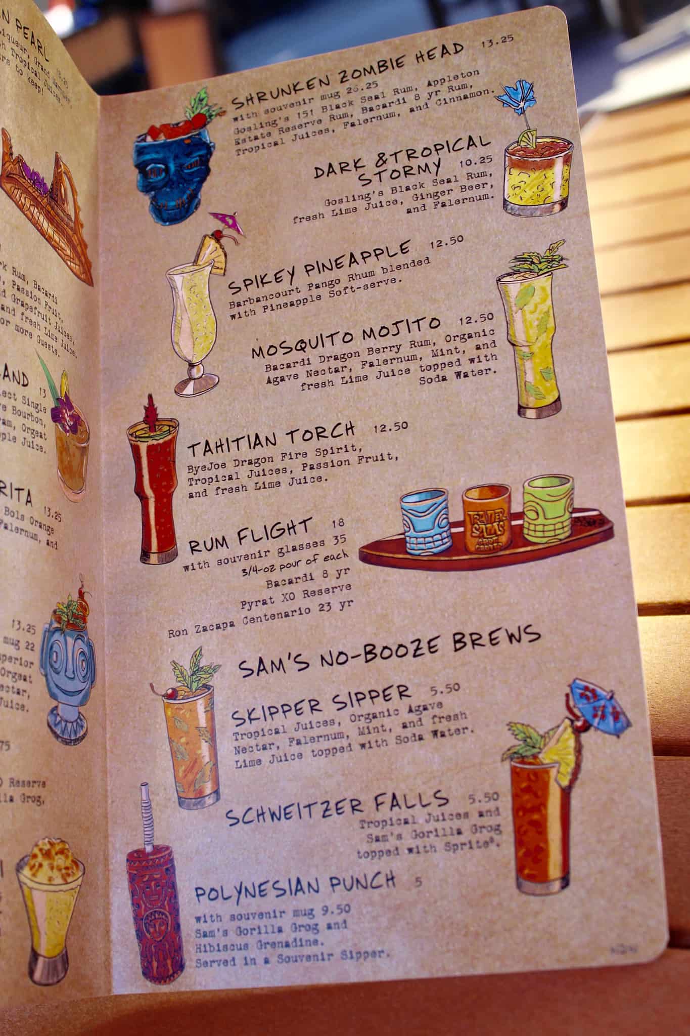 Recent price increases in snacks/beverages across property didn't skip over Trader Sam's but seeing how these specialty drinks already had a pretty high price tag, you won't notice the price hike much. What's more noteworthy here is that the menu at Tiki Terrace now includes drink prices on the menu! Menus on the WDW website still lack drink prices and only provide prices for the handful of food items offered.