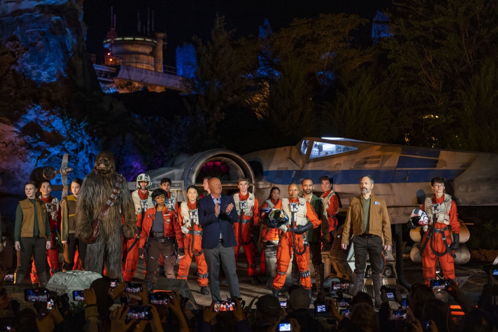 During a special dedication ceremony Wednesday night inside Star Wars: Galaxy’s Edge at Disney’s Hollywood Studios, Disney Parks, Experiences and Products Chairman Bob Chapek lauded the attraction’s immersive storytelling and technological innovation.